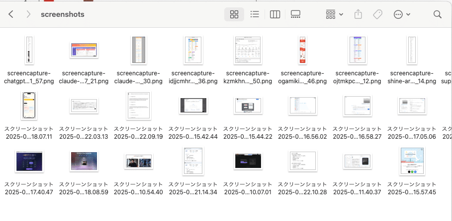 screenshotsフォルダには、該当のファイル名の画像だけが入っています。