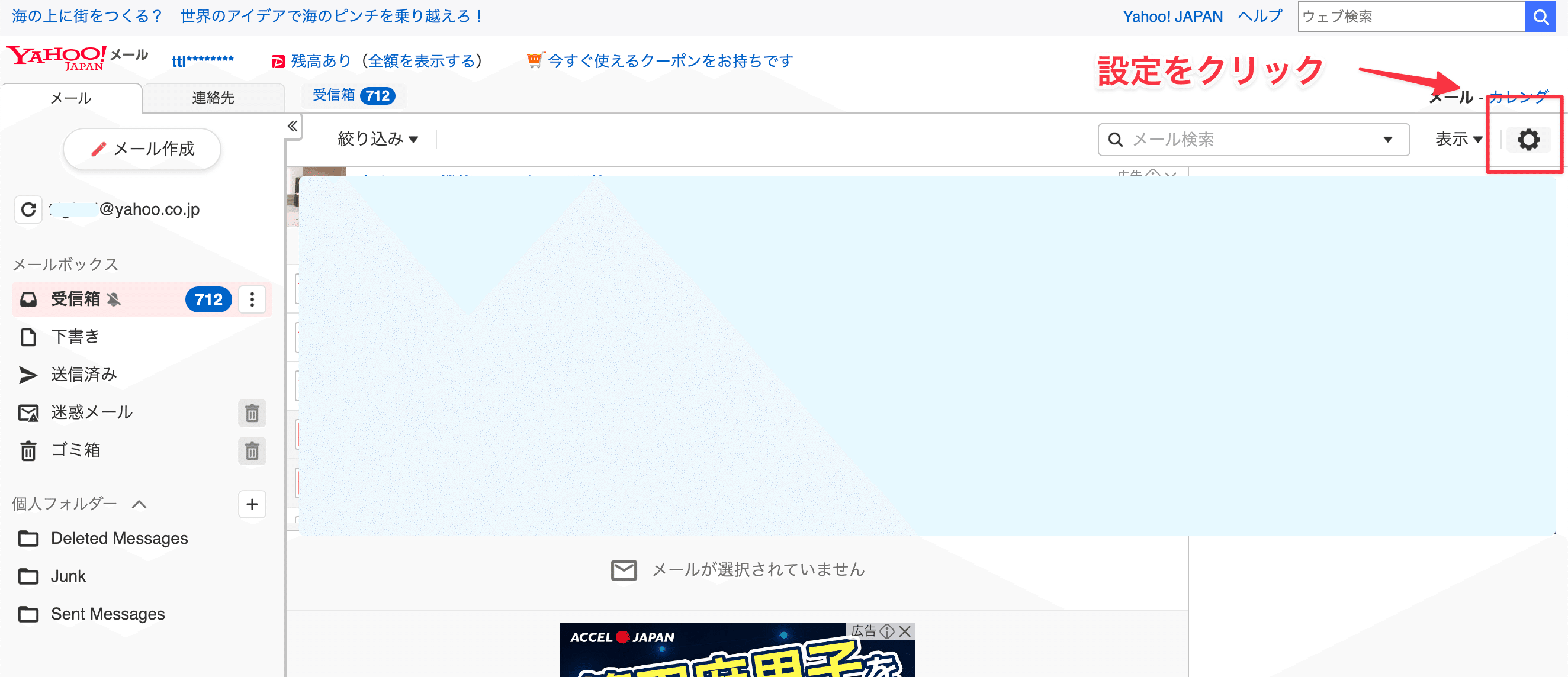 Yahooを開き、右上の設定アイコンをクリックします。