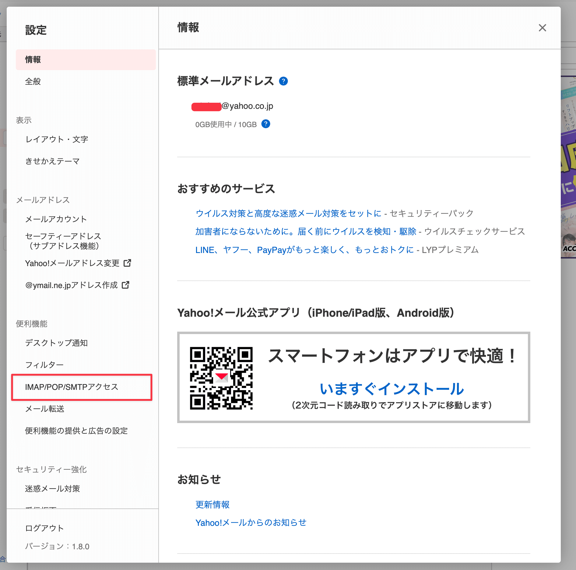 「IMAP/POP/SMTPアクセス」をクリックします: