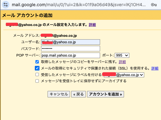 POPサーバー:pop.mail.yahoo.com