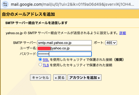 送信メール(SMTP)サーバー: smtp.mail.yahoo.co.jp