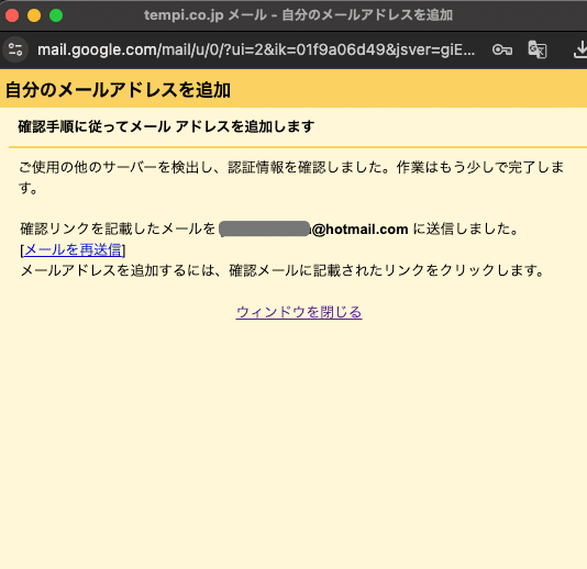 「アカウントを追加」をクリックしてうまくいけば、以下の画面に移ります。