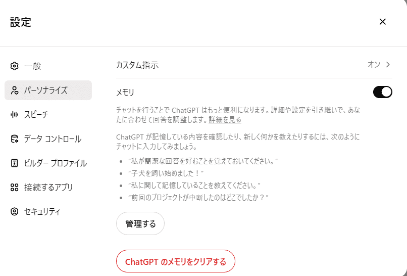 メモリ機能は、ChatGPTに記憶を持たせることができる機能です。