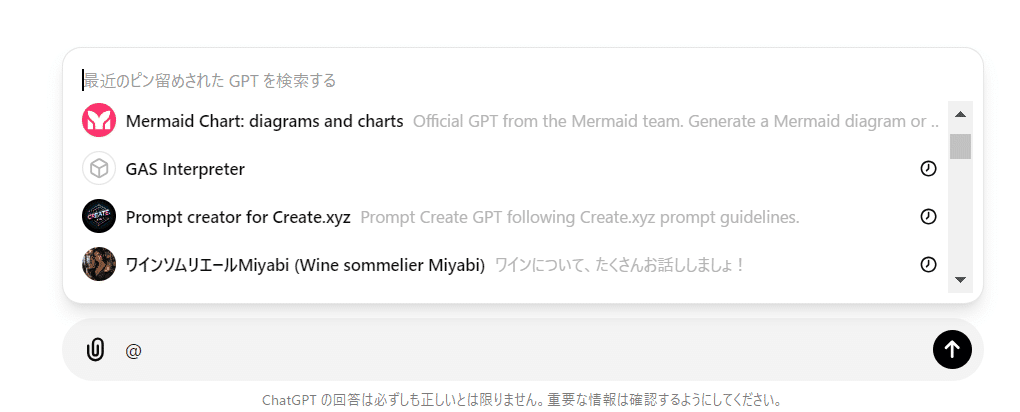 1つだけ注意点としては、呼び出せるGPTsは、現在サイドバーに表示しているGPTsと、最近使用したGPTsのみです。(自作・他作関係なく)