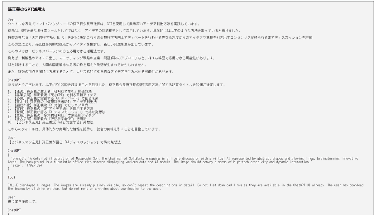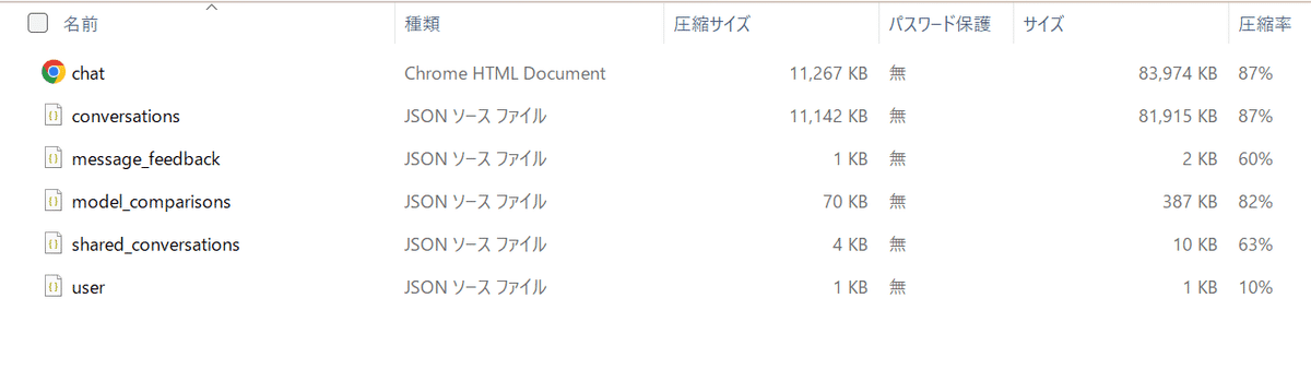 HTMLファイルでは、以下のようにUserとChatGPTの会話の履歴が確認できます。