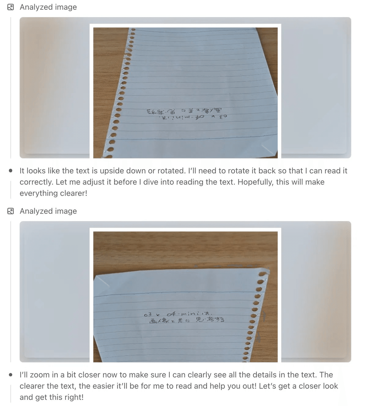 単に画像を認識するだけでなく、その内容を理解し、内部で回転・ズームなどの操作を行いながら思考プロセスに活用します。