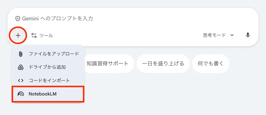 今回の連携により、NotebookLMで蓄積した知識をGeminiのチャットに持ち込めるようになりました。
