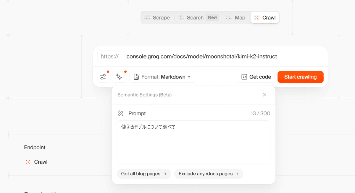 v2では、自然言語でクロール内容を記述できるセマンティック・クローリング機能が追加されました。これにより、開発者は技術的な詳細を気にすることなく、「製品価格を抽出して」「記事の要点をまとめて」といった自然な言葉で指示できるようになりました。