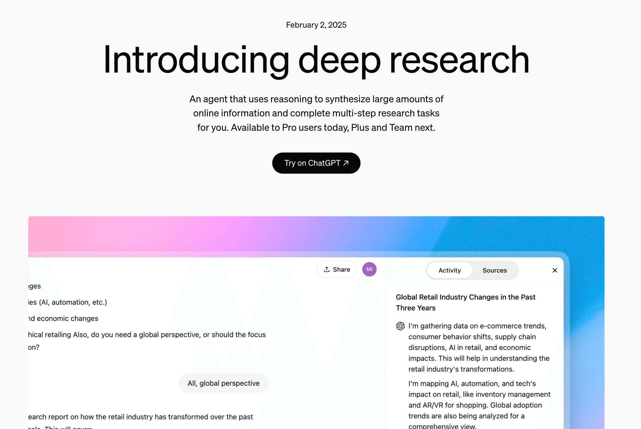 2025年2月3日、OpenAIはChatGPT向けの新機能「Deep Research」を発表しました。