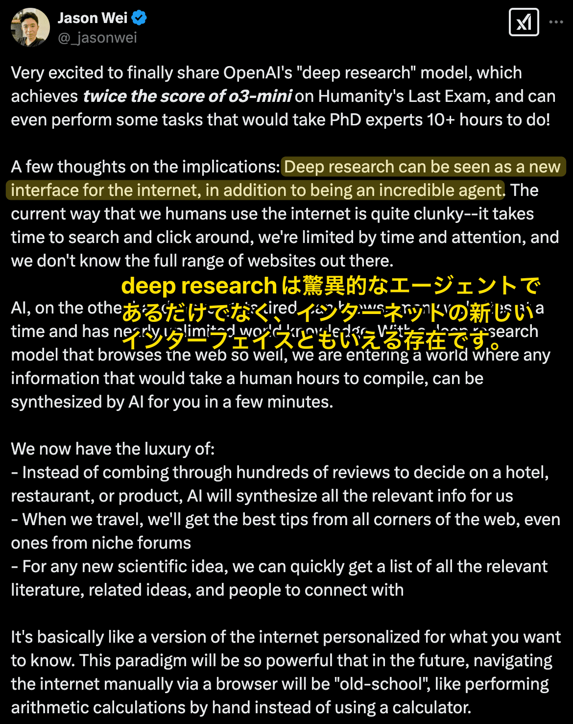OpenAIスタッフは、Deep Researchを「インターネットの新しいUI」として捉えています。