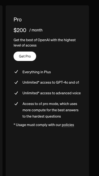 独占提供される「o1 pro mode」(高性能版)へのアクセス