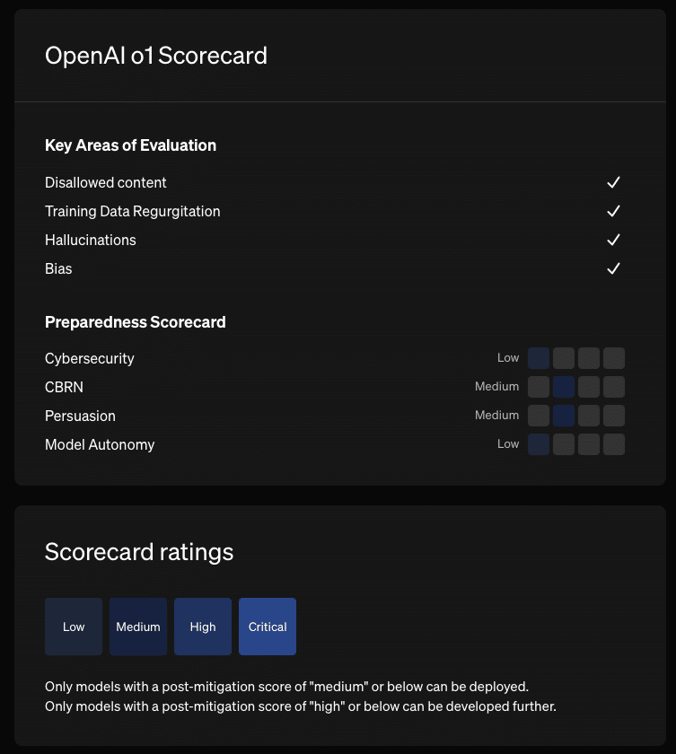 OpenAIは、o1およびo1-miniのリリースに際して、包括的な安全性評価を実施し、その結果を「o1 System Card」として公開しました。