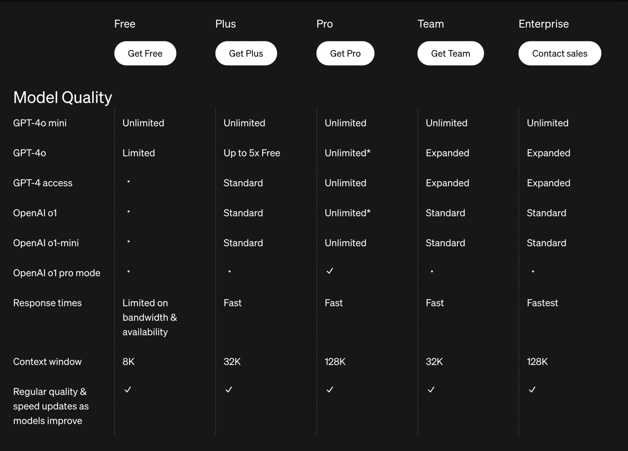 無料プラン(Free)では8Kトークンまで、PlusプランおよびTeamプランでは32Kトークンまで、そしてProプランやEnterpriseプランでは128Kトークンという大容量のコンテキストウィンドウを利用可能です。