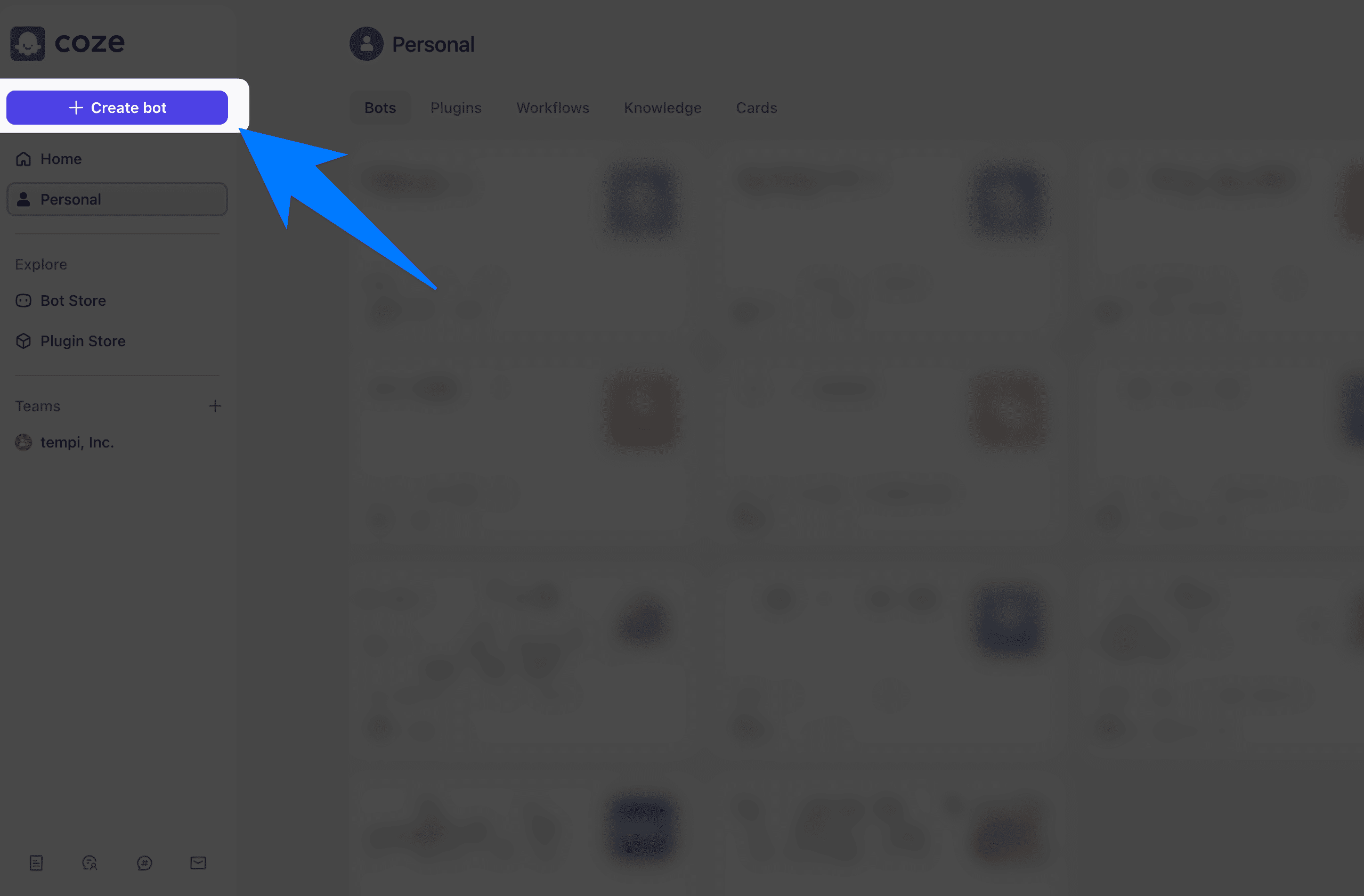 ① Cozeにログインし、ボットを新規作成します。(coze.com)