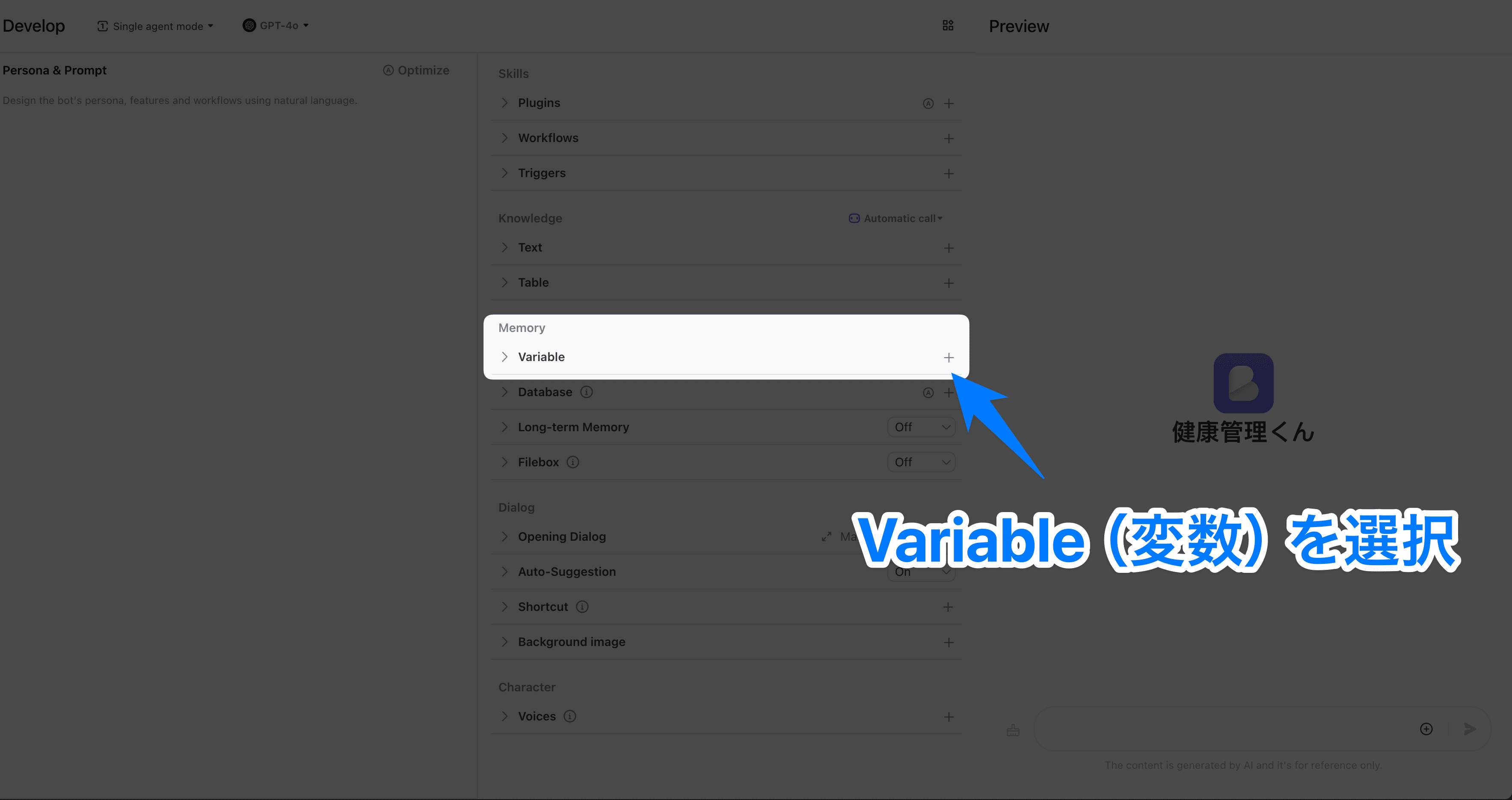 本記事では、Cozeの変数機能を活用し、パーソナライズされた健康管理ボットを作成する方法を具体例を通して解説しました。