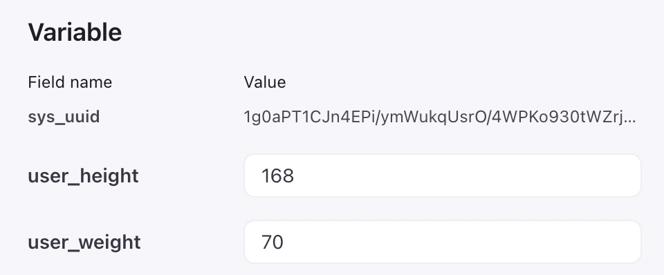 変数名: `user_height`、デフォルト値: 空欄、説明: ユーザーの身長 (cm)
