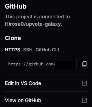 このようにリポジトリのURLが表示されるので、Cursorなどのコードエディタからソースコードをダウンロードすることが可能になります。