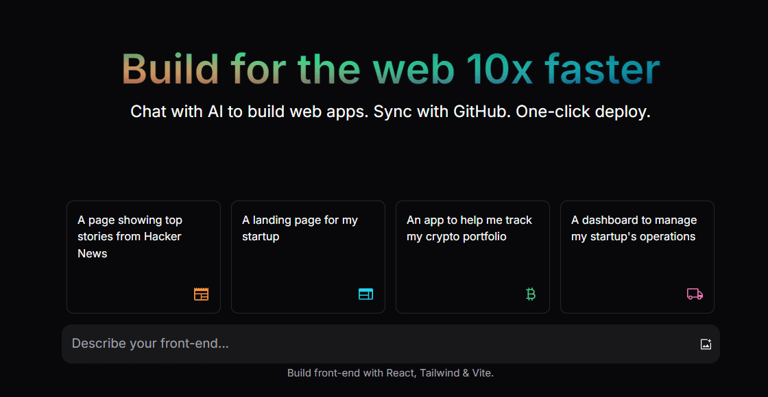 また、Githubと連携してコードの管理やCursorなどのローカル開発環境との連携、デプロイ機能と様々なwebアプリの開発に便利な機能が揃っています。