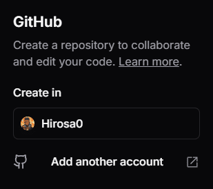 Create in [アカウント]となるので、アカウントを選択するとリポジトリが作成されます。