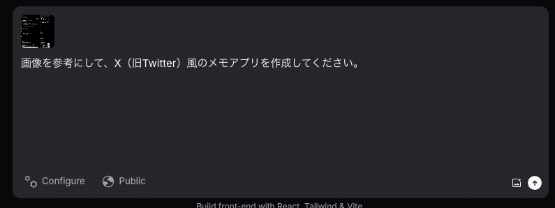 例えば、X (旧Twitter) のスクリーンショットをアップロードして、クローンを作成するように指示することもできます。