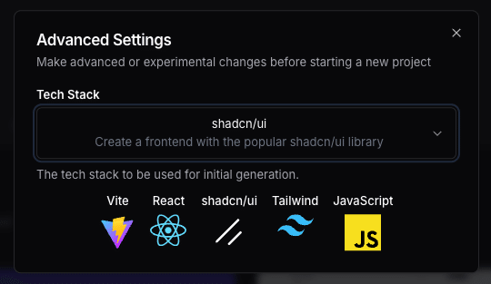configure設定では、今後様々なUIライブラリやフレームワークを選択できるようになる可能性がありますが、現在は Shadcn/ui と呼ばれるUIコンポーネントライブラリを基盤とした技術スタックのみが採用されています。