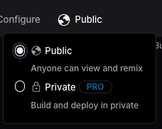 Public に設定すると、誰でもプロジェクトを閲覧し、Remix (複製して編集) することができます。