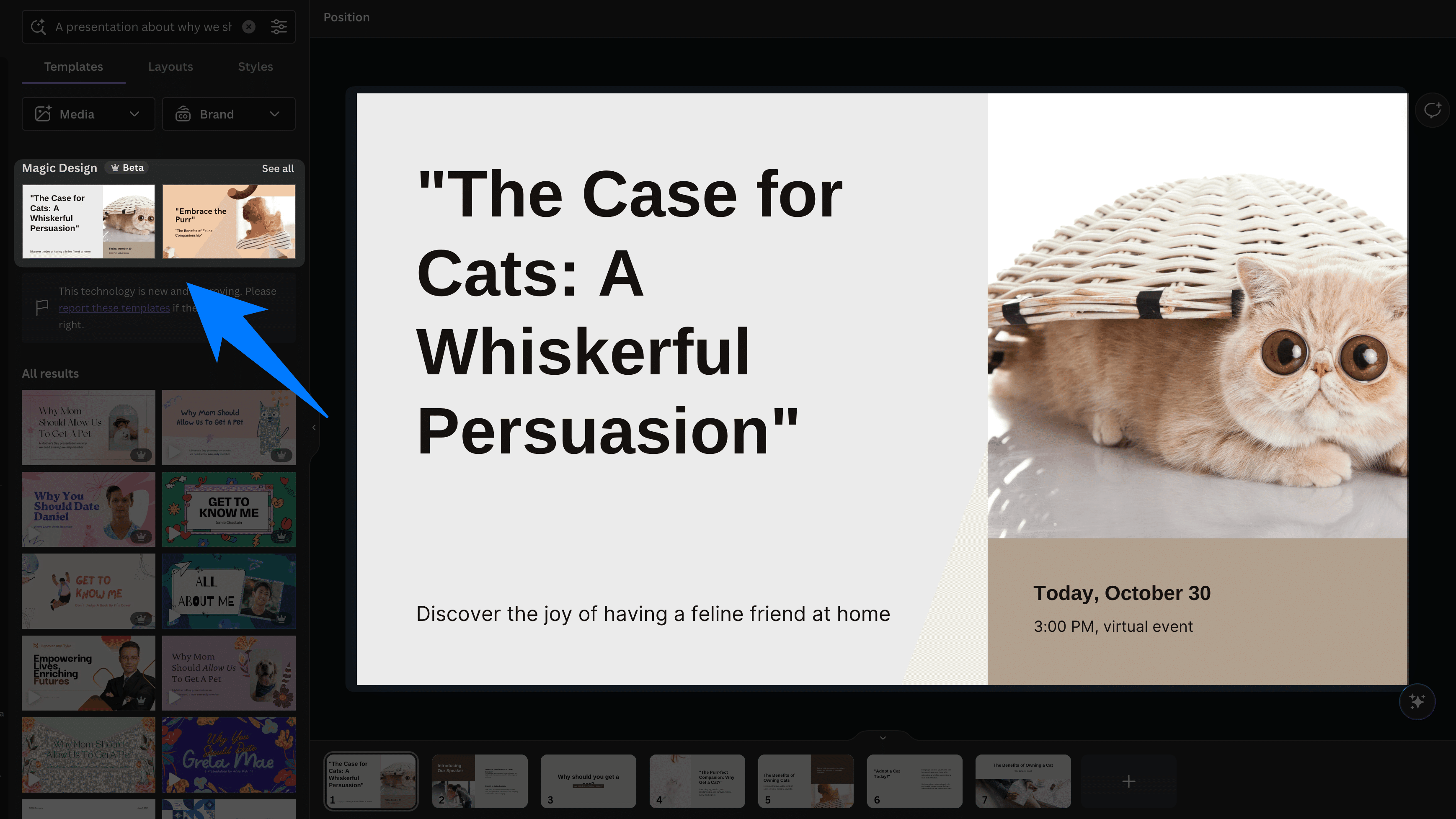 プロンプト:「A presentation about why we should get a cat(訳:猫を飼うべき理由についてのプレゼンテーション)」