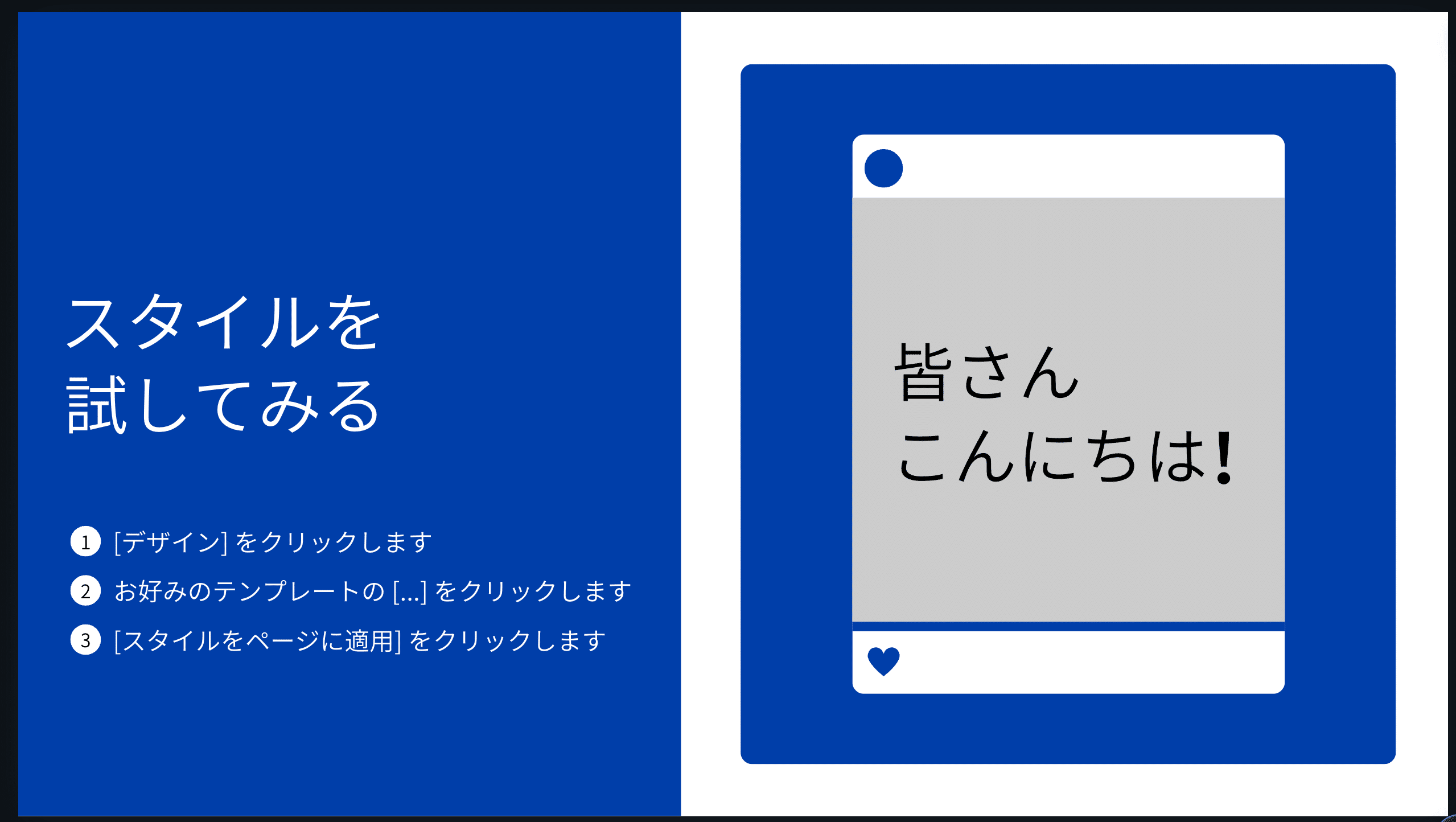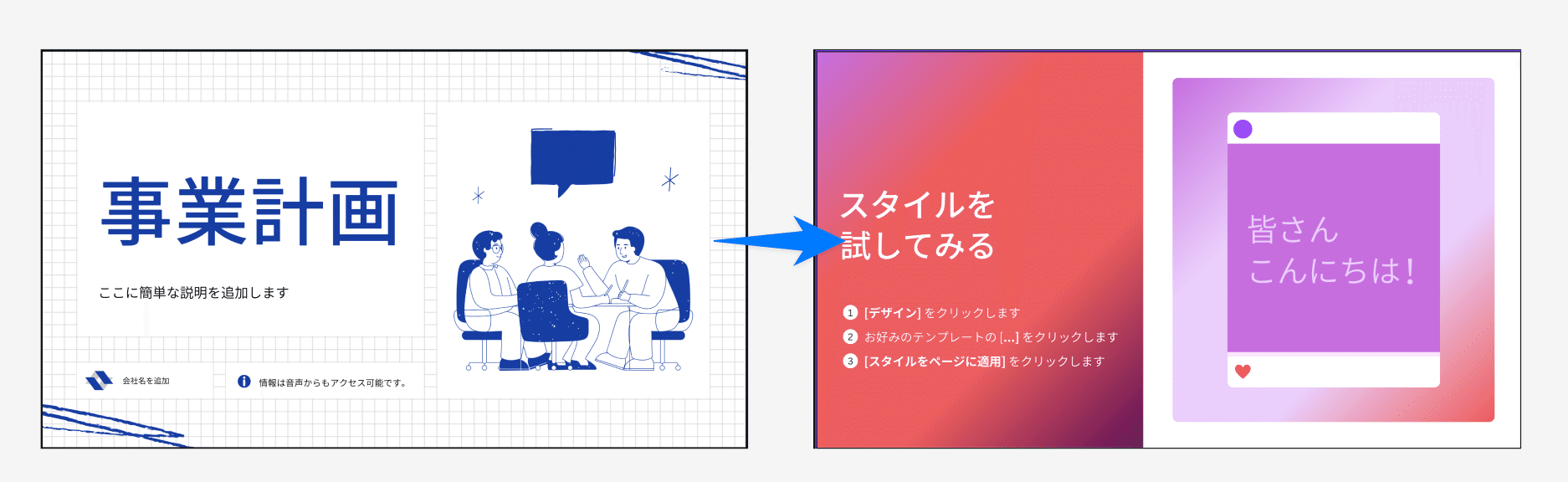スタイルとレイアウト:ワンクリックでブランドカラーとテンプレートを適用します。
