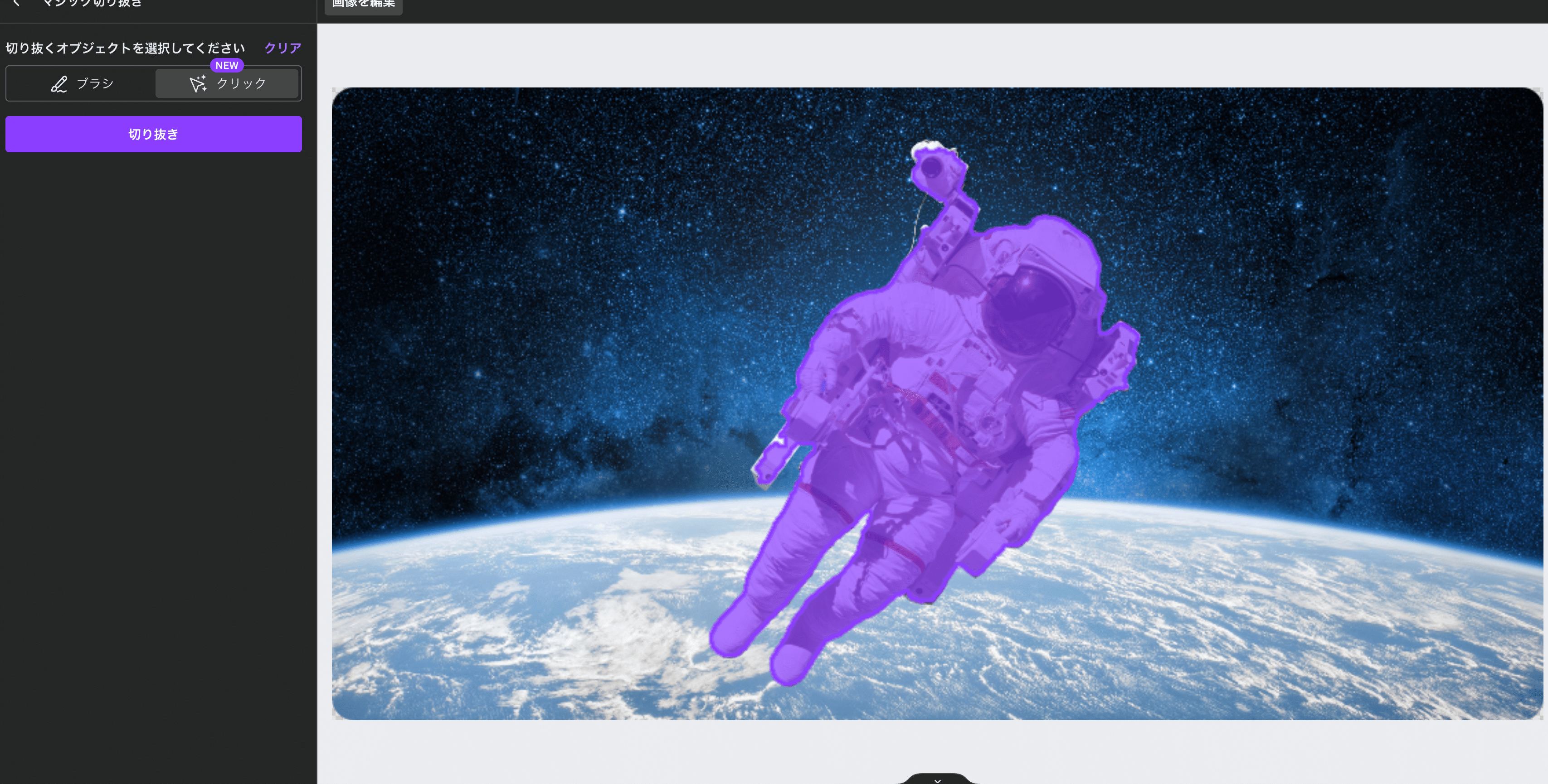 操作は非常に簡単で、切り抜き画面で対象となるオブジェクトをクリックして「切り抜き」を選択するだけです。