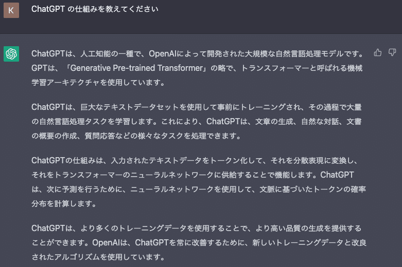 ChatGPTは、大規模言語モデル(LLM: Large Language Model)と呼ばれる機械学習の自然言語処理モデルの一種を発展させたものです。LLMは、膨大な量のテキストデータを収集し、文章中のキーワードの関係を推論します。このモデルは、ここ数年の計算能力の向上とともに成長してきました。LLMは、インプットデータの量とその変数が増えれば増えるほど、その能力を発揮できます。