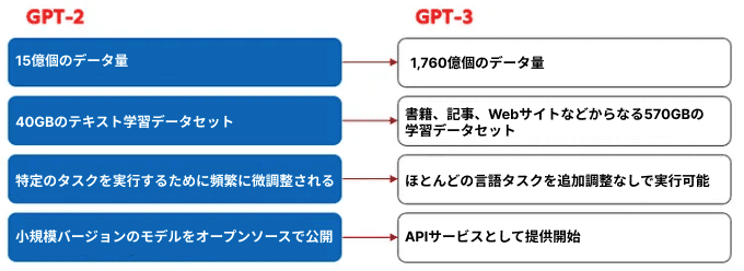 Generative Pre-training Transformer(GPT)モデルは、2018年にGPT-1としてopenAIによって初めて発表されました。モデルは2019年にGPT-2、2020年にGPT-3、そして最近では2022年にInstructGPTとChatGPTと進化を続けています。人間のフィードバックをシステムに統合する前に、GPTモデルの進化における最大の進歩は、計算能力の向上によるもので、GPT-3はGPT-2よりも大幅に多くのデータで学習することができ、より多様な知識基盤と幅広いタスクを実行する能力が実現されました。