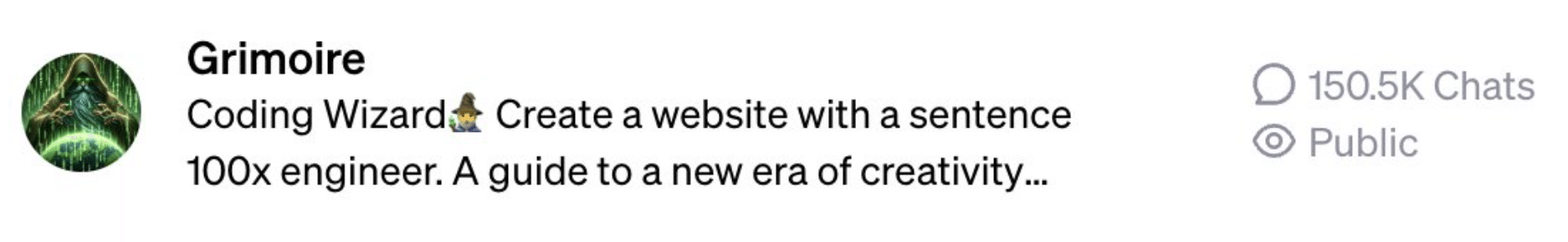 世界に目を向けると、単体で15万回以上も使用されている、Grimorie と言う GPTがあります: