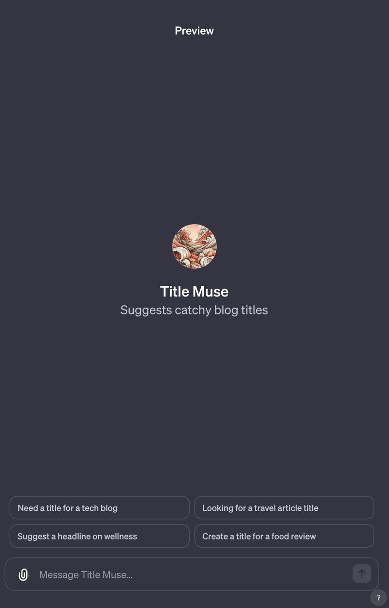 実際の GPT の動作は、右側の Preview タブからいつでも確認することができます。