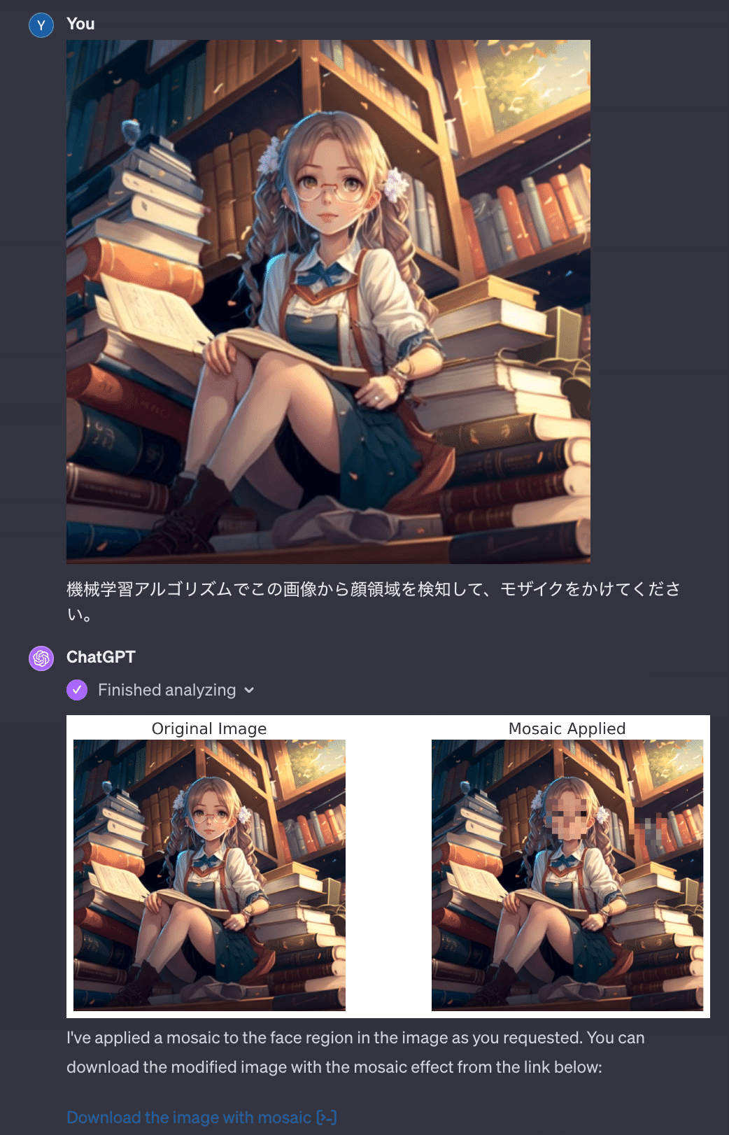 例えば、ChatGPT研究所のロゴ画像を提供し「この画像を説明して」と依頼できます。