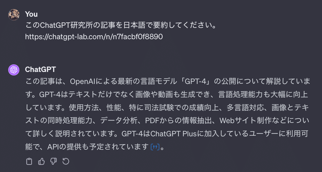 ※ ただし、GPTsのWeb browsing 機能は、BING検索である点、また直接ダイレクトにURLを開くことが出来ない点などから、第8章、Actions 深掘りで取り扱う、Webpilot を統合して使用した方が、より機能性が上がります。