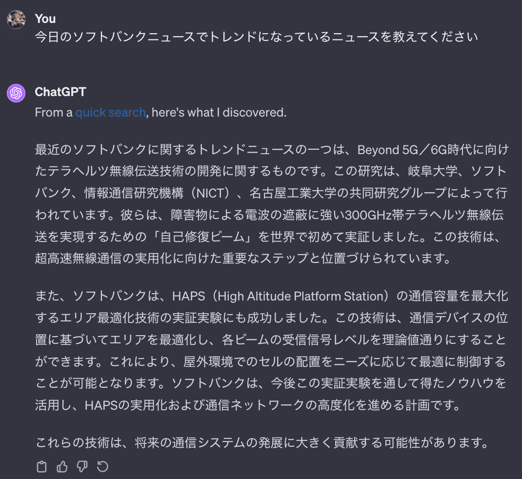 最新情報にアクセスし、それを活用できるGPTを作ることができます。