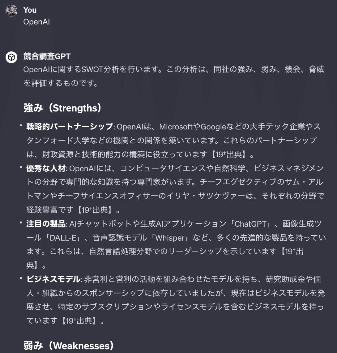 競合調査GPT: OpenAIの2023年の動向をSWOT分析のフレームワークで分析してみましょう。