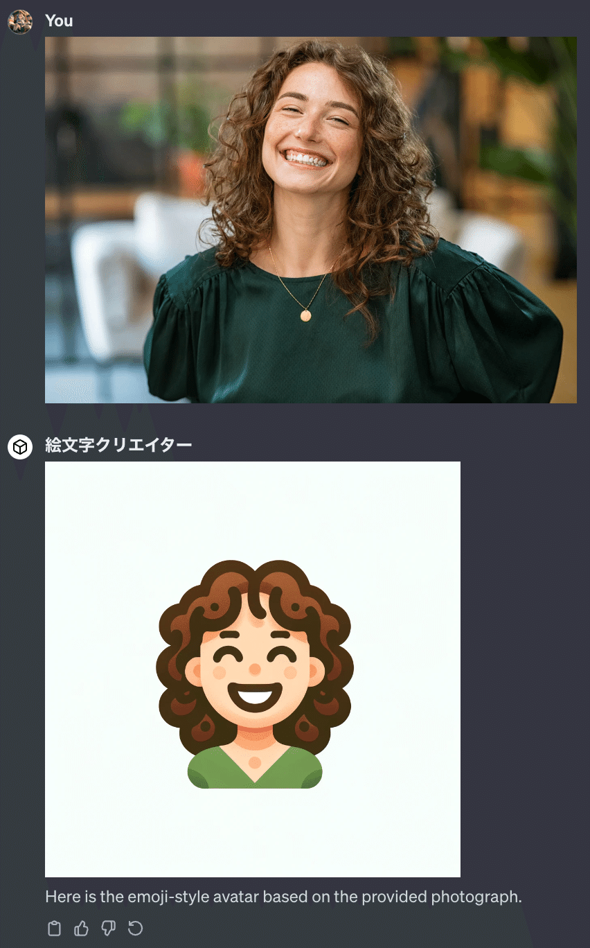 それを絵文字スタイルのアバターに変換してくれるGPTsを作成してみましょう。