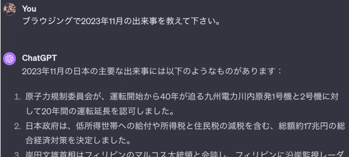 今回は、ウェブブラウジングの実例をプロンプトと一緒に、3つ紹介します。
