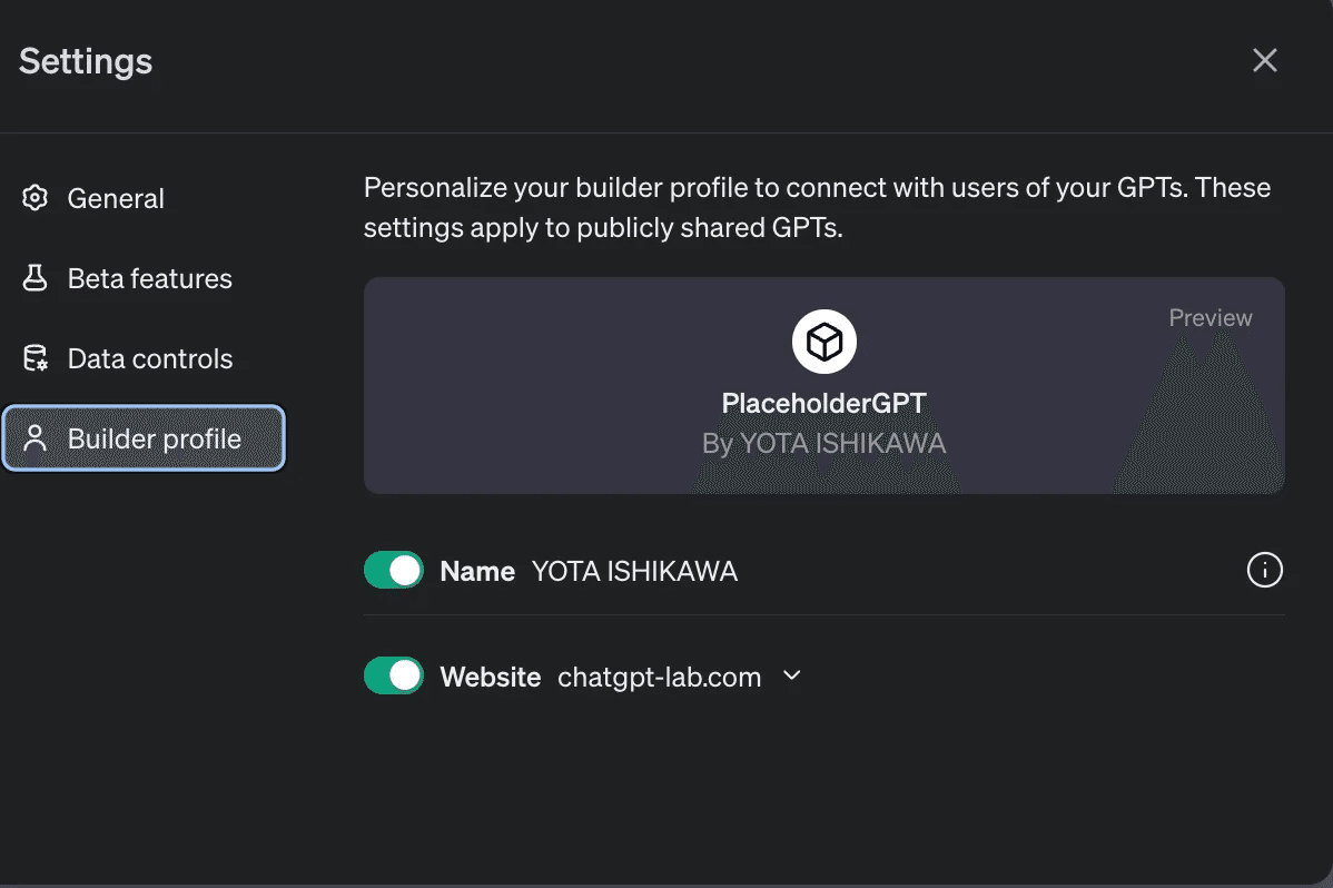 GPT Store に出す場合は必須: Builder Profile を設定する