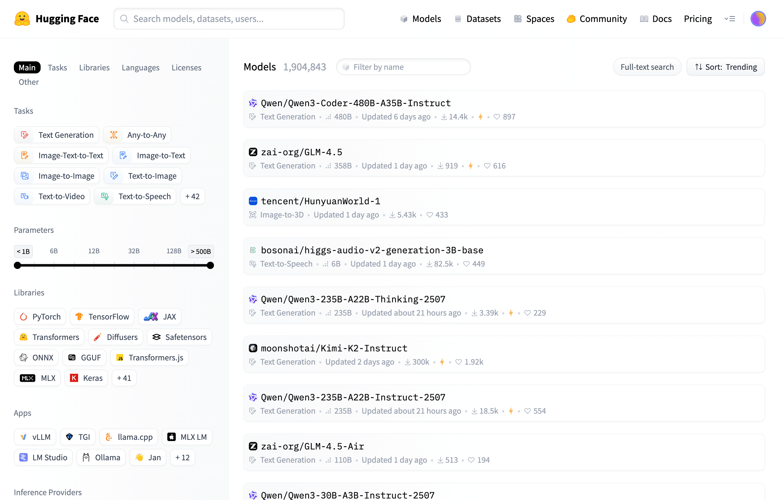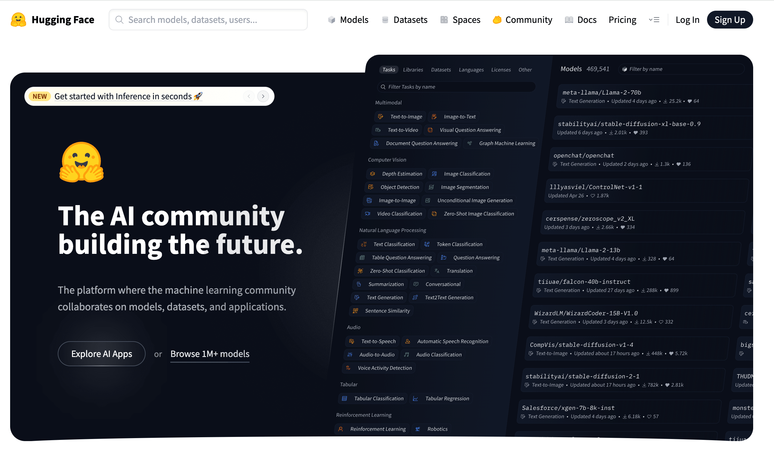 一言でいうと、世界中のAIモデルやデータセットが集まる巨大な共有プラットフォームです。