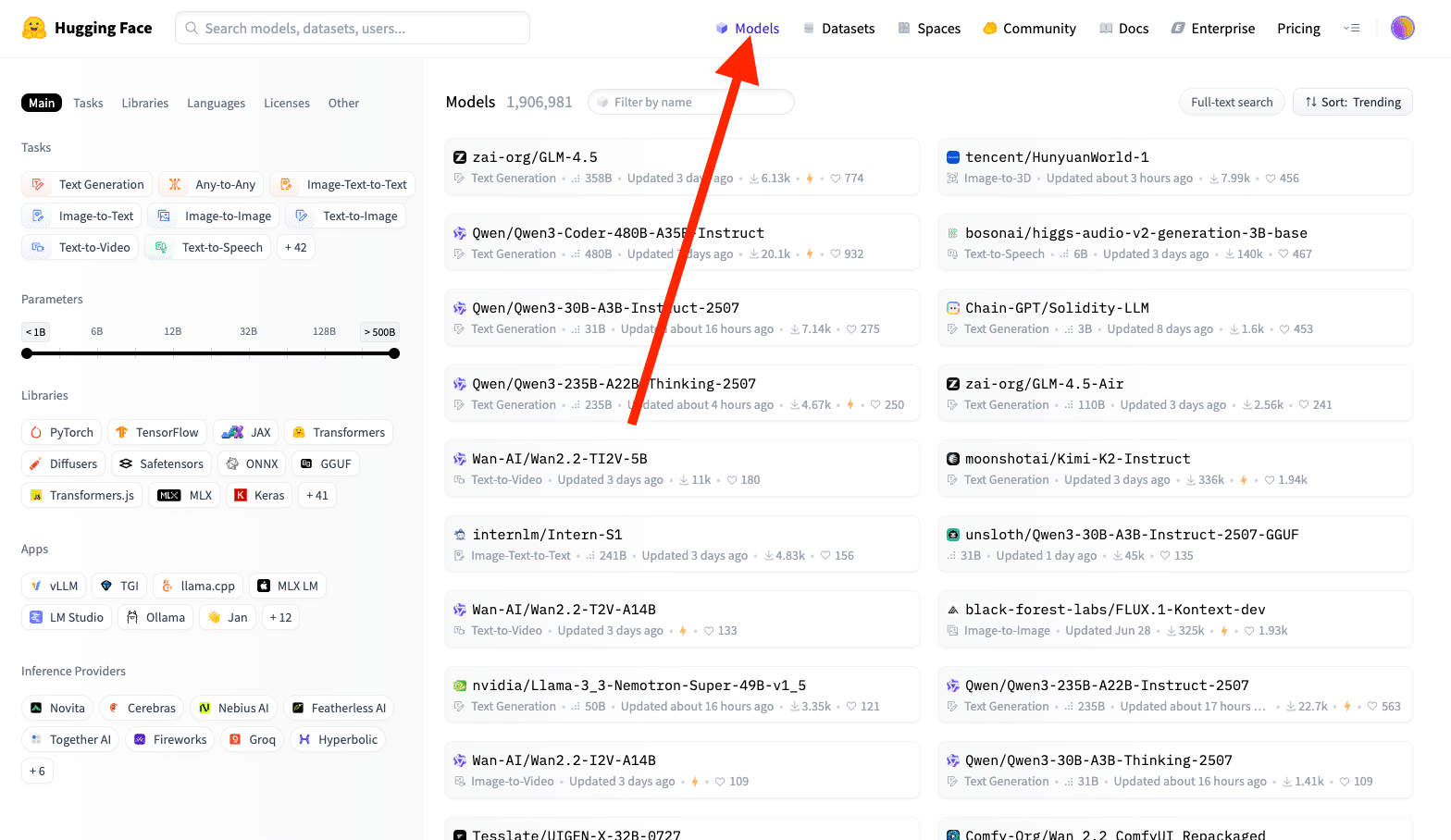 現在このプラットフォーム上には100万を超えるAIモデルが公開されています。つまり、最先端のAIモデルを自分で一から開発しなくても、Hugging Faceで探してすぐに試すことができます。