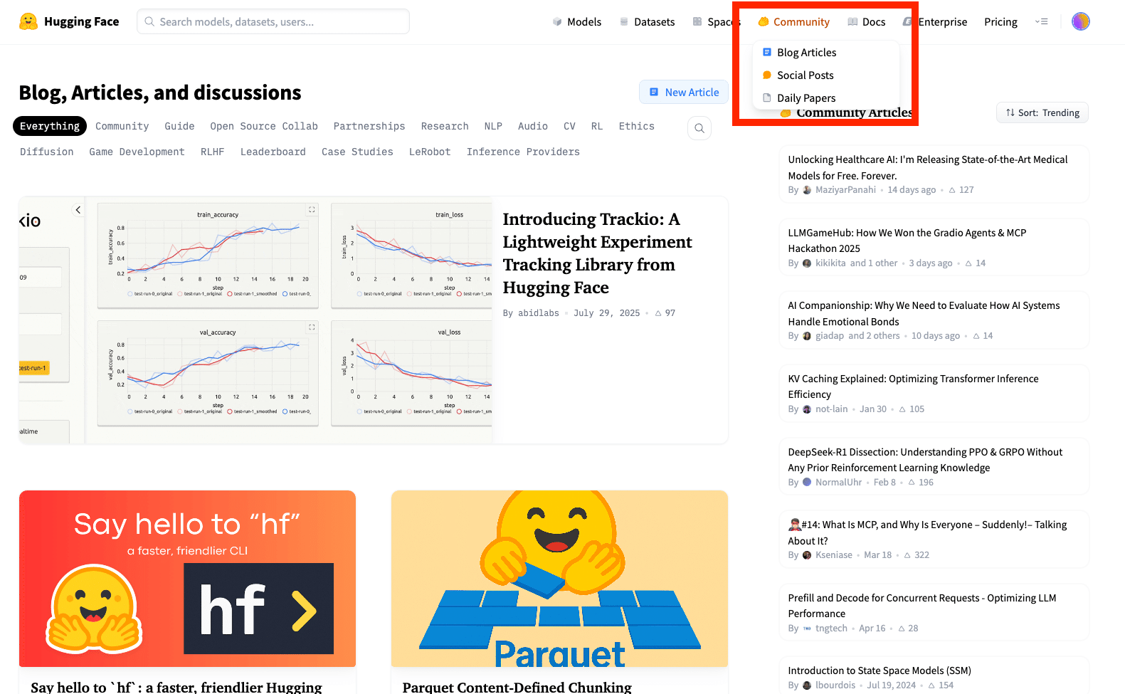 Hugging Face利用者同士が交流できるCommunityには、3つの場があります。