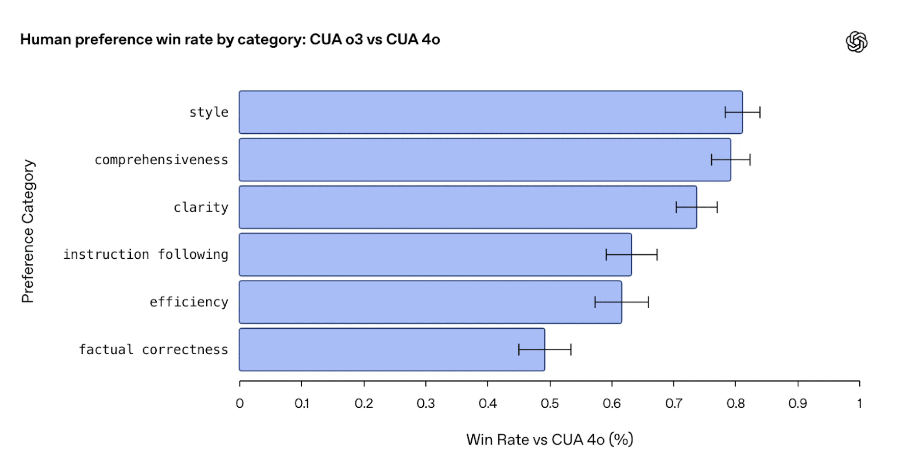 コンピュータ操作に特化した安全性: 新しいo3 Operatorは、コンピュータ利用時の判断基準や拒否すべき操作を学習させるための専用データで追加学習済み。