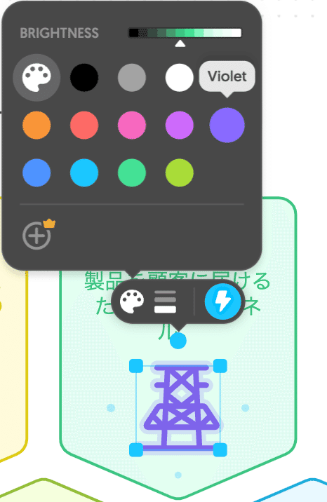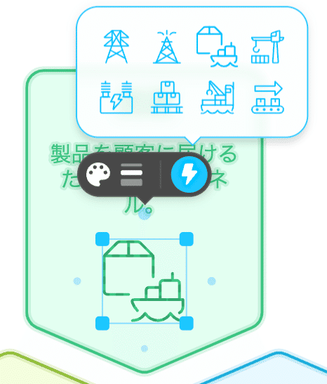 アイコンの編集:アイコンをクリックして、稲妻マークを押すと別のアイコンに変えることができます。