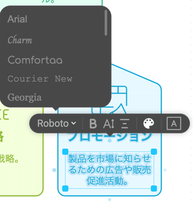 文字の部分もテキスト自体の編集とフォントや色・大きさの変更ができます。