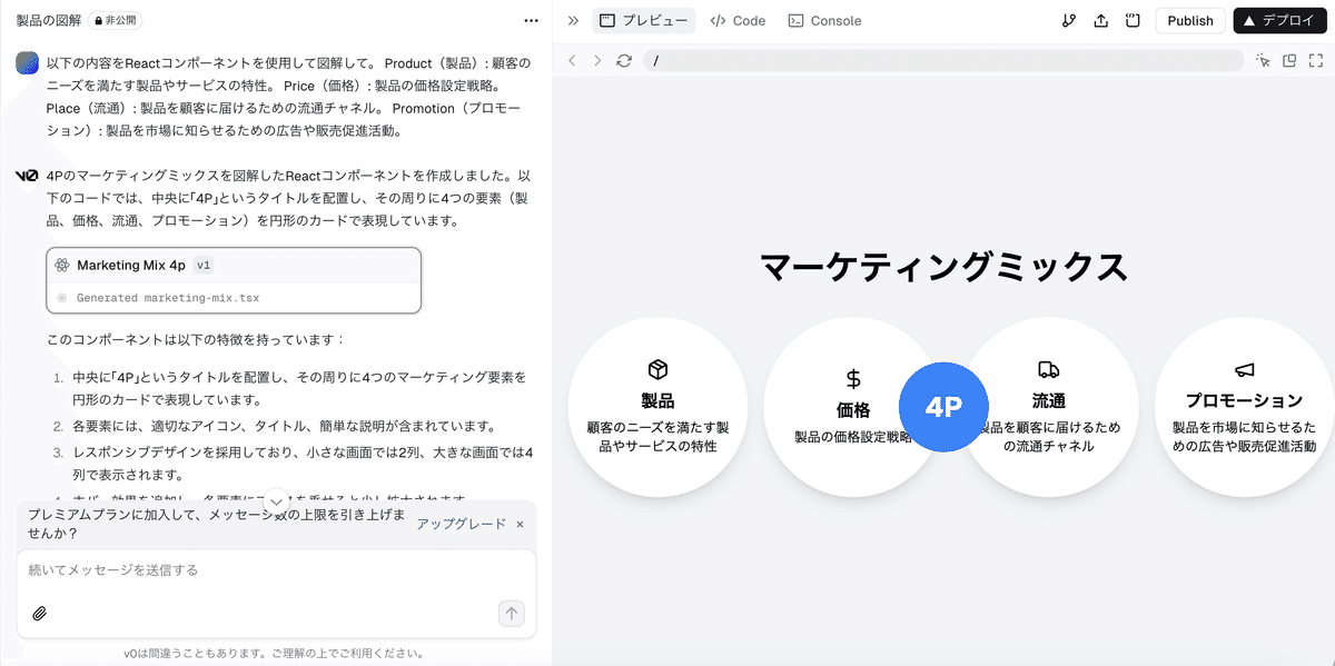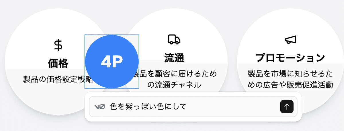 デザイン生成: v0は入力されたテキストを解釈し、図解を生成します。