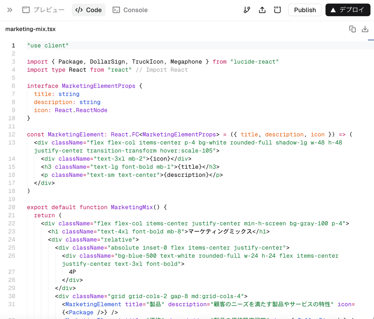 React/Next.jsとの互換性: React/Next.jsのコードを生成するため、Webサイトやアプリケーションへの実装が容易です。