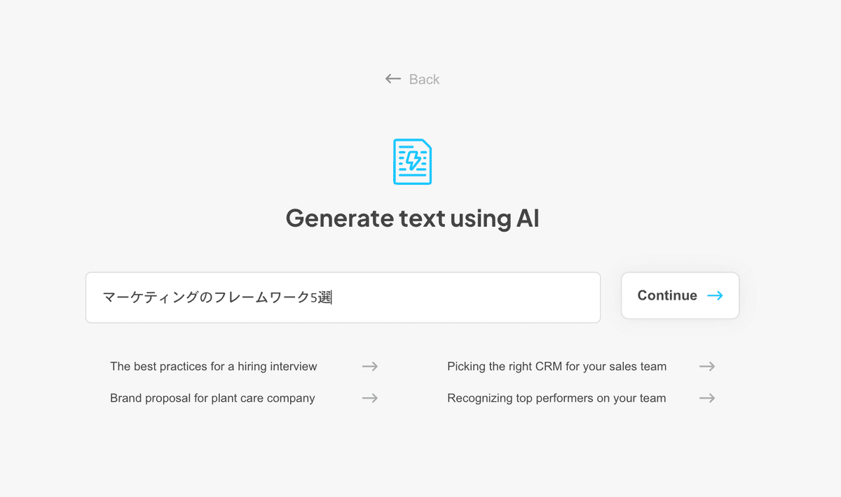 例えば、「マーケティングフレームワーク5選」と入れると、以下のような文章を作成してくれます。