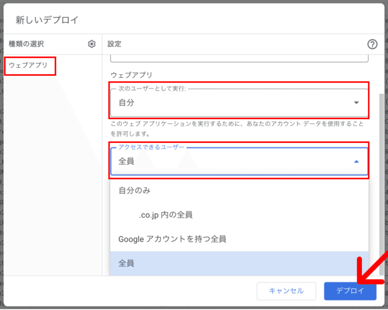 右下の「デプロイ」 をクリックします